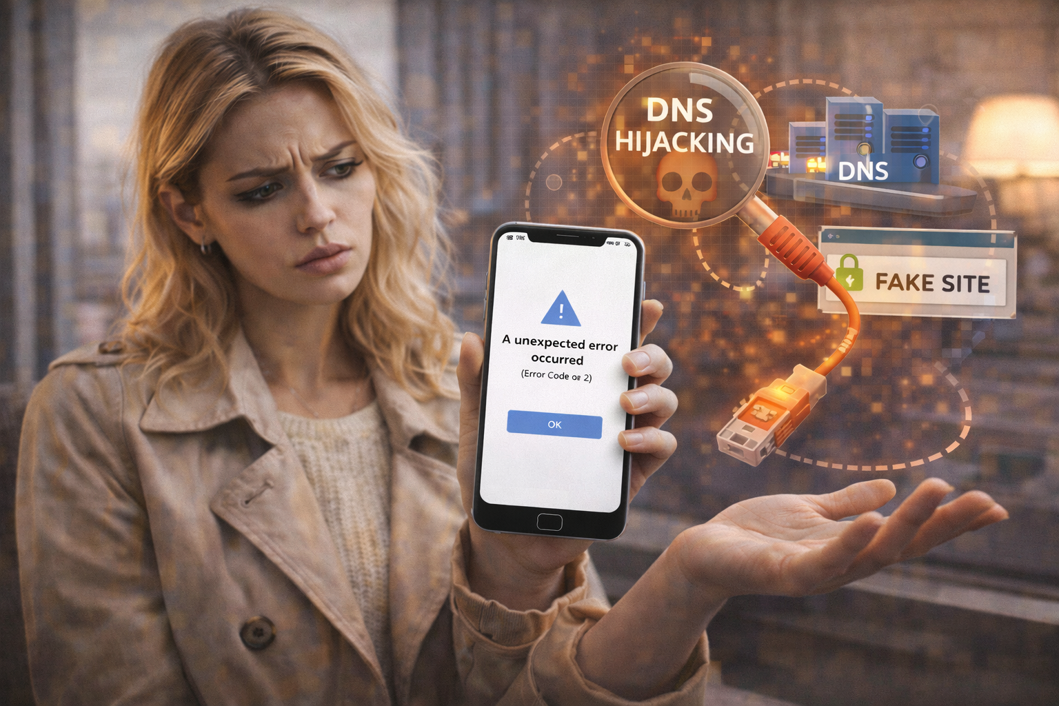 🚨 “An Unexpected Error Occurred” (Error Code 2) Only on Certain Networks: Understanding the DNS Hijacking Scenario