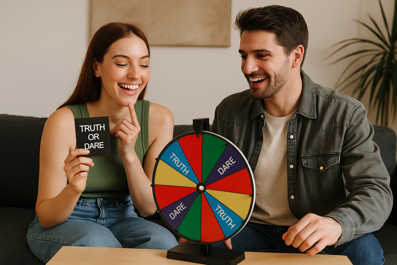 - Color wheel — assign truth categories (red = romance, blue = funny, yellow = deep questions).